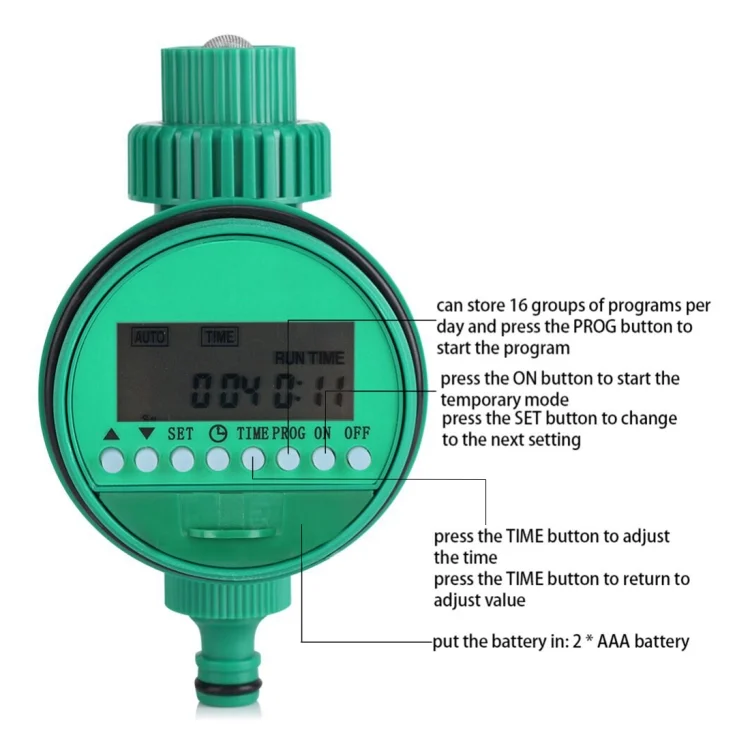 2. Intelligent flowers watering timer, automatic programmable watering time, the standard clock time. 3. You can set the watering time for your garden when you are not at home.