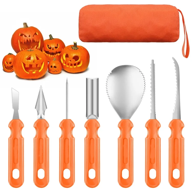 1. Pumpkin carving set, sets of different sizes create interesting Halloween pumpkin designs. Tools can be neatly organized and stored in the carry bag after use.