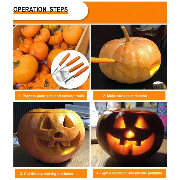 3. The pumpkin carving kit’s convenient handle and sharp, sturdy rust-proof knife are designed for carving your own Halloween pumpkins. Suitable for adults and children. Tools used by children require adult supervision. Not recommended for children under 7 years of age.