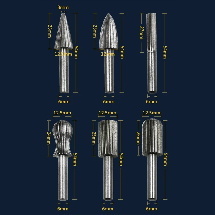 Hard High Carbon Steel Rotary Carving Knife Abrasive Processing Grinding Head Set