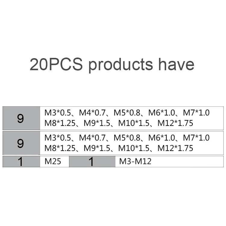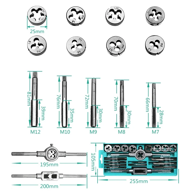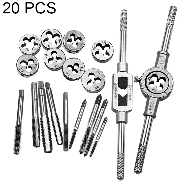 20 PCS Multi-specification Tap and Die Combination Set Hand Metric Wire Tapping Wrench Winch