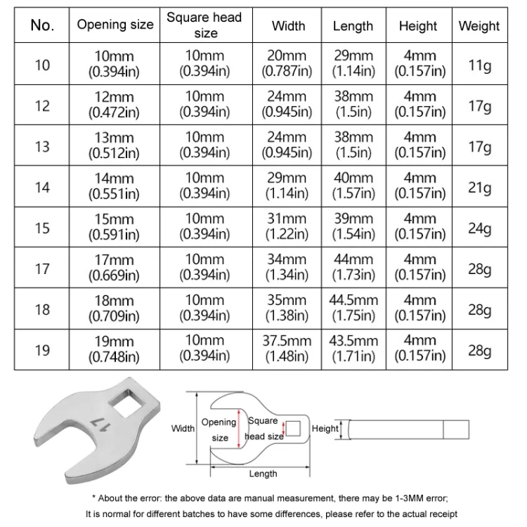 6. It can be used with 3/8-inch (10mm) square head L wrench extension, ratchet wrench
