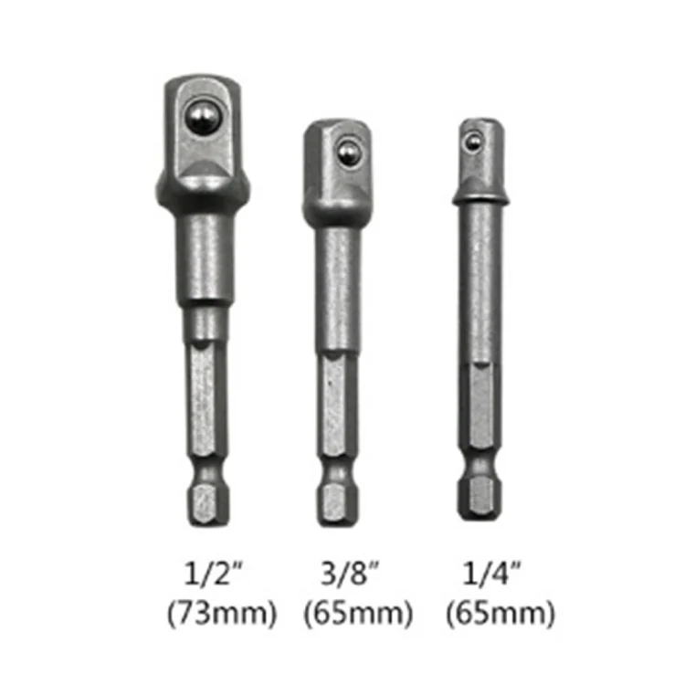 3 PCS/Set Socket Bit Extension Bar Hex Shank Adapter Drill Nut Driver Power Drill Bit(1/4, 3/8, 1/2 inch), Length:65-73mm