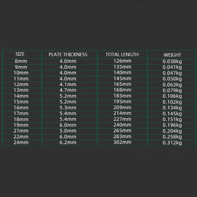 6. Packing list: 10 sets: 8mm/10mm/12mm/13mm/14mm/15mm/17mm/19mm/22mm/24mm, 12 sets: 8-10-12-13-14-15-16-17-18 -19-22-24mm