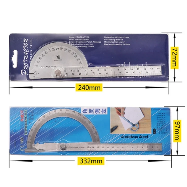 0-180 Degree Stainless Steel Protractor Angle Finder with 0-145mm Arm Measuring Ruler Tool