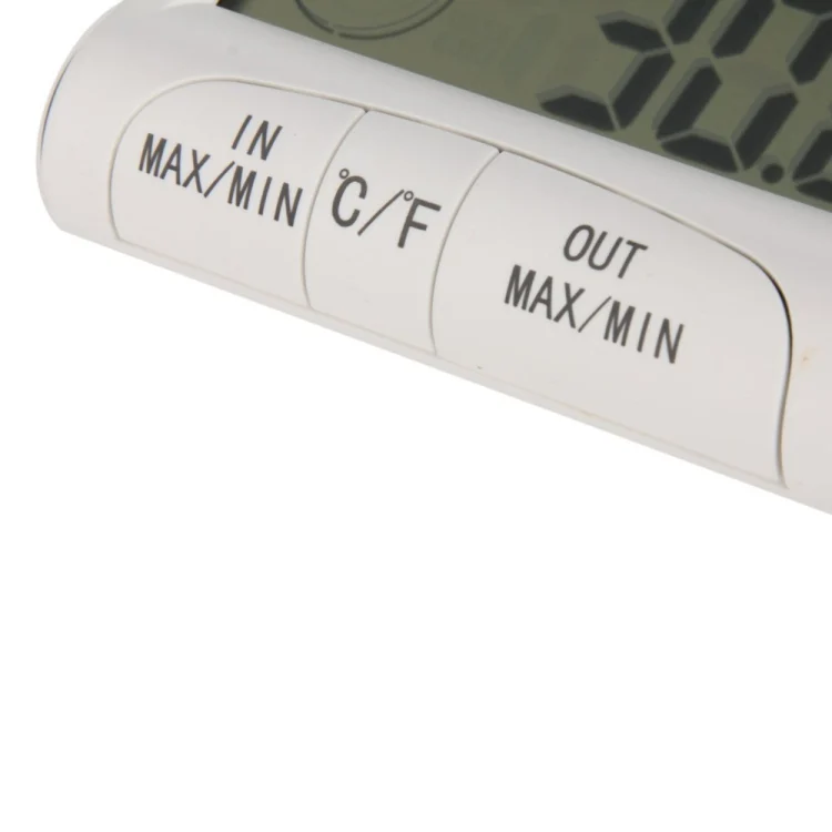 LCD Digital Thermometer Hygrometer Moisture Meter and Wired Temperature with External Sensor White