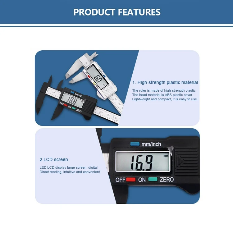 3. Clear and large LCD screen display a clear and easy-to-read measuring result for you, with an easy-to-switch button between Inch and mm.