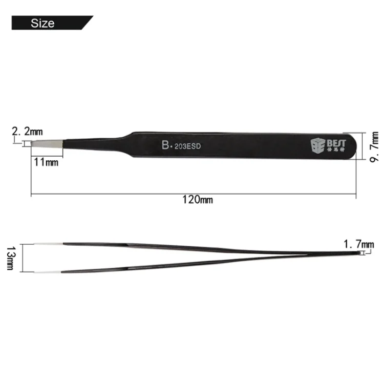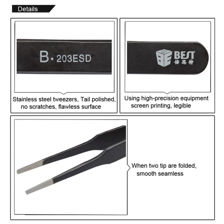 BEST BST-203ESD 202 Stainless Steel Anti-static Tip Tweezers