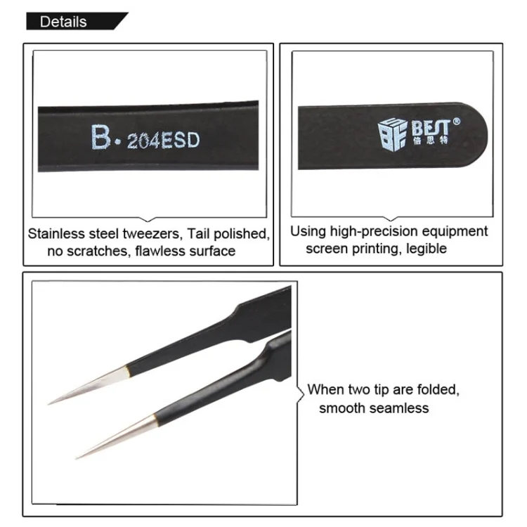 BEST BST-204ESD 202 Stainless Steel Anti-static Tip Tweezers