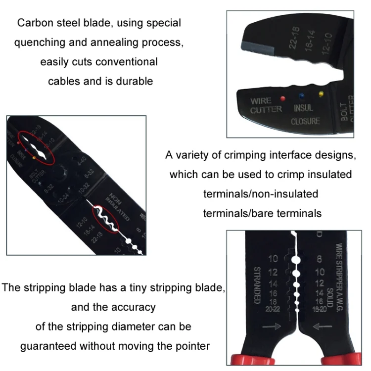 2. Stripping application range: 10/12/14/16/18/20/22 (AWG)
