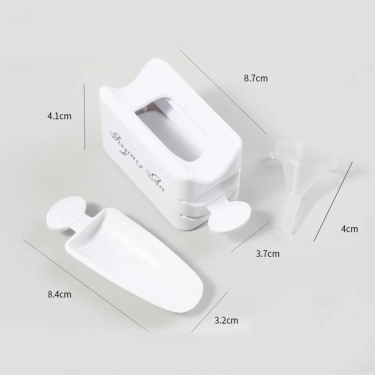 3. Size: box size 8.7×3.7 cm, recessed spoon size 8.4×3.2 cm