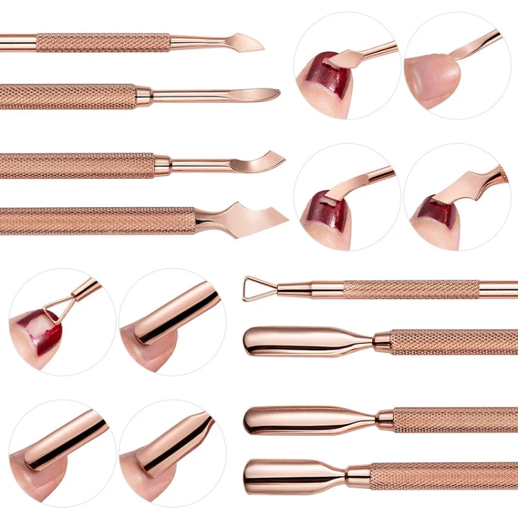 Rose Gold Double-headed Steel Nail Remover Set Clean Decontamination Remover Manicure Tool