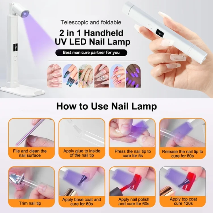UV LED Nail Lamp Portable Retractable Nail Drying Light Mini Handheld Nail Dryer Lamp With Bracket