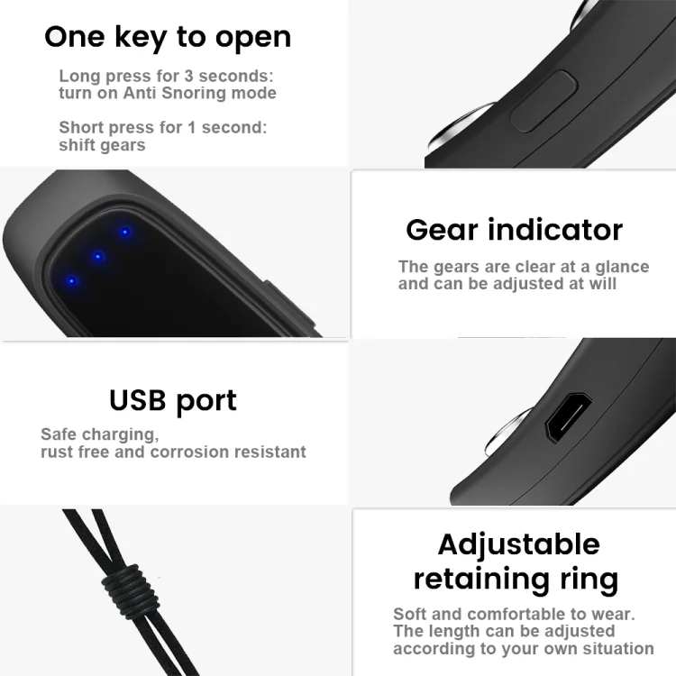 1. The anti-snoring device uses sound recognition and bone conduction technology to detect snoring and sends out low-frequency pulses to stimulate and massage the nerves, effectively allowing you to have a calm and enhanced sleep quality