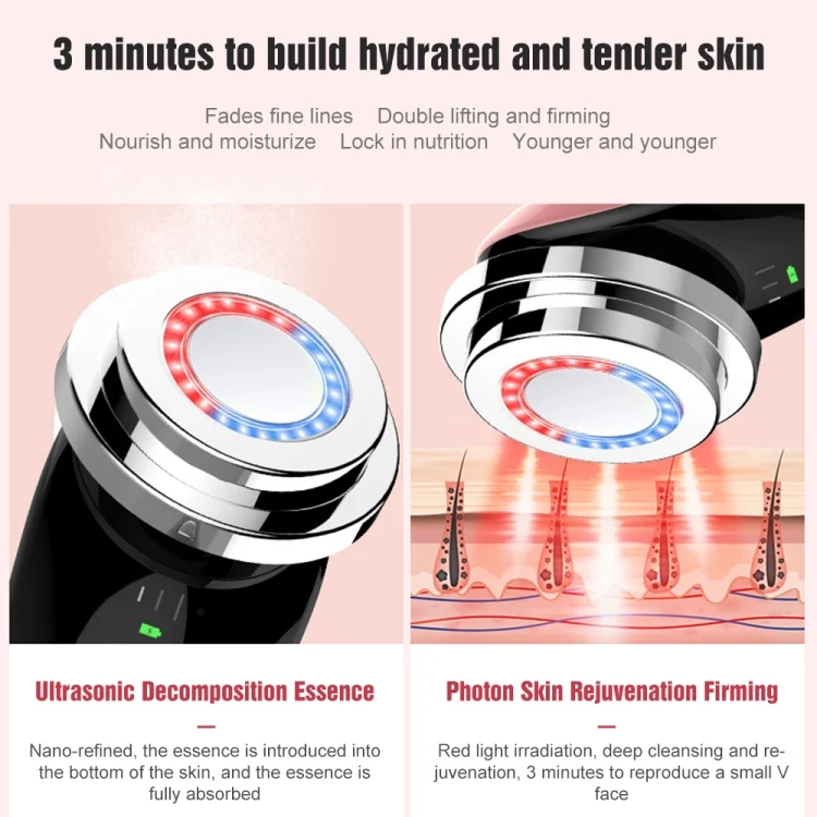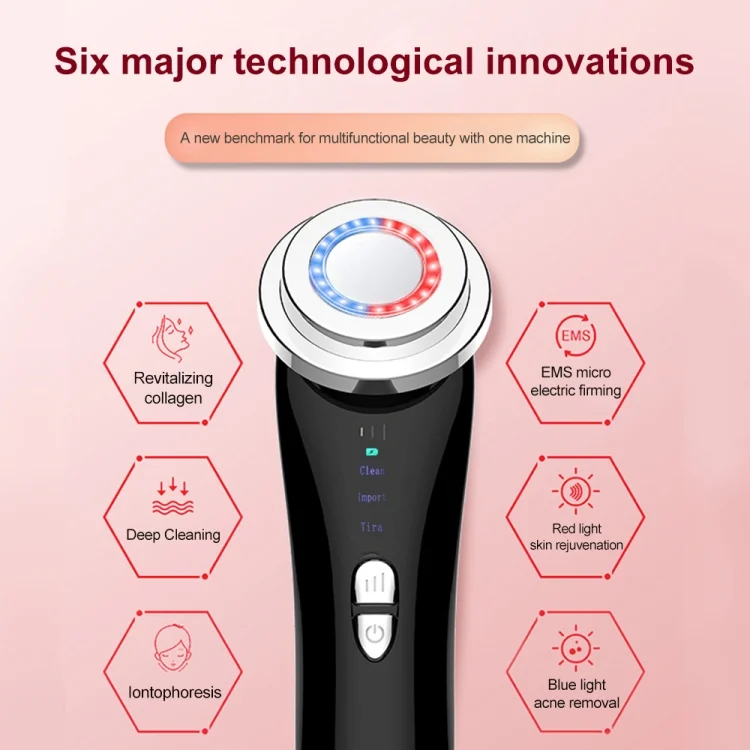 Facial Electronic Beauty Instrument Ultrasonic Ion Red And Blue Color Light Introduction Instrument