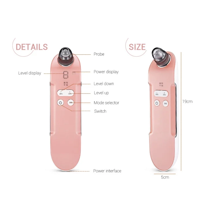 Effective in removing blackhead, acne, pimple and blemish, you can easily adjust the suitable suction levels for different skin areas