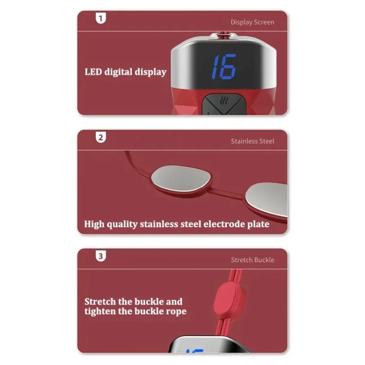 2. Function: multi-angle fitting, constant temperature hot compress, LED digital display, EMS pulse massage