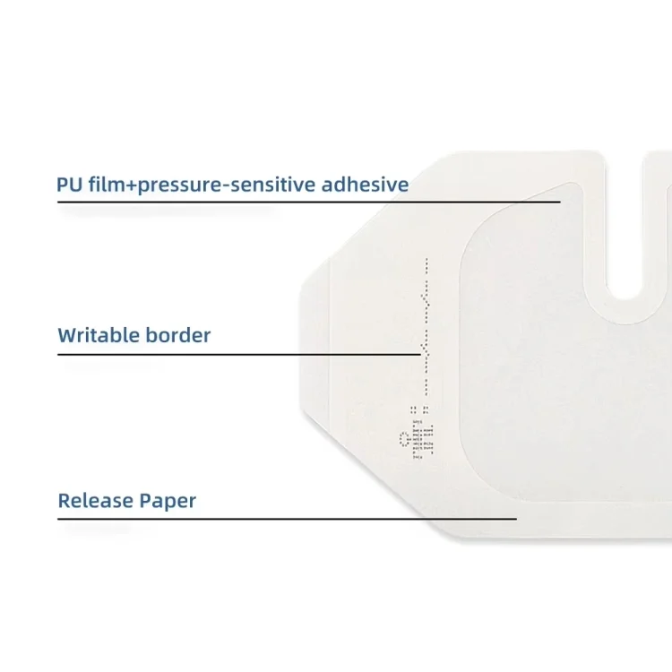 1. The transparent film dressing is composed of PU film, pressure-sensitive adhesive, and release paper, providing gentle and safe fixation.