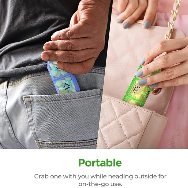 14 Compartment Medicine Box Plastic Double Row Leather Bag Pill Box