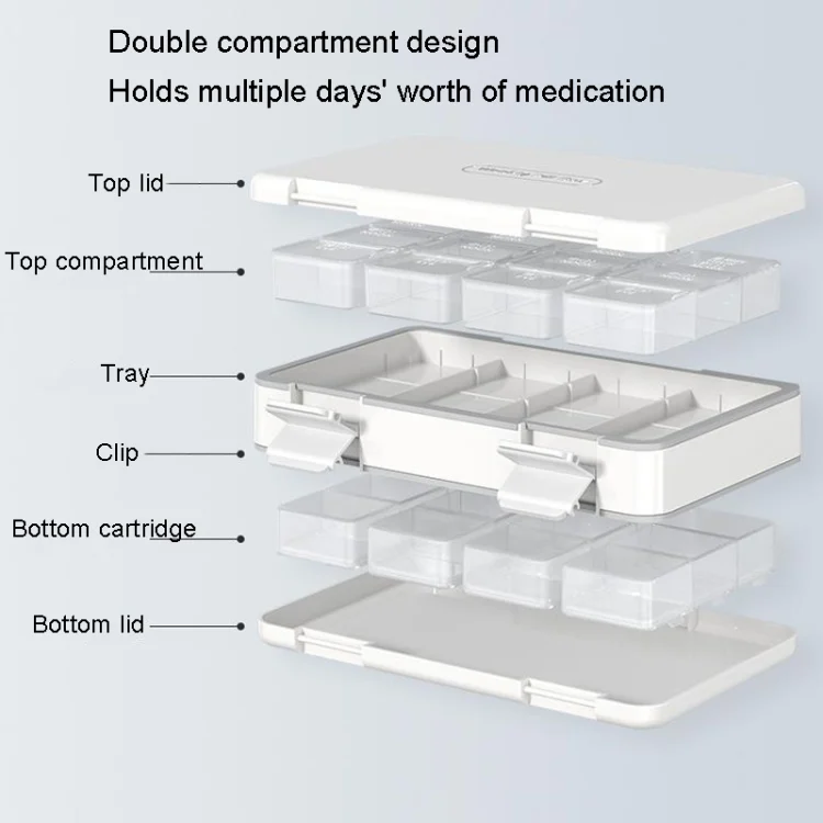 5. Double-layer multi-compartment design, can hold multiple days of medication