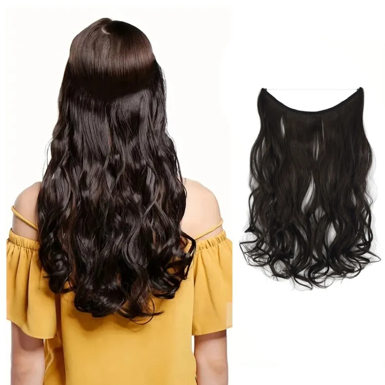 Fishing Line Hair Curtain Long Curly Wig Seamless Hair Extension