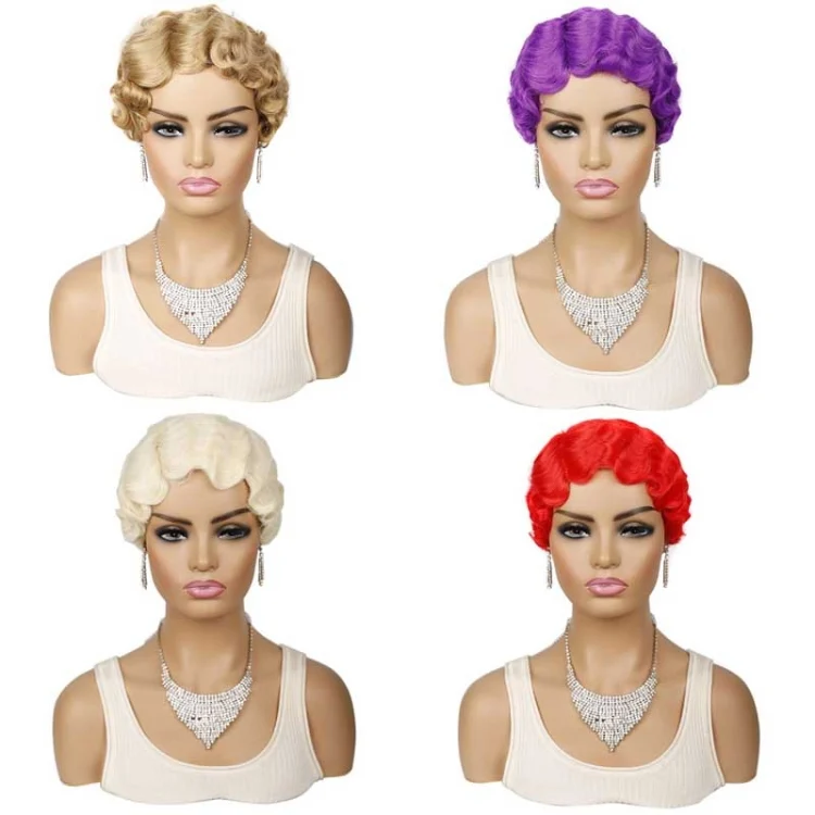 Ladies Short Hair Wig Retro Water Wave Curly Wig