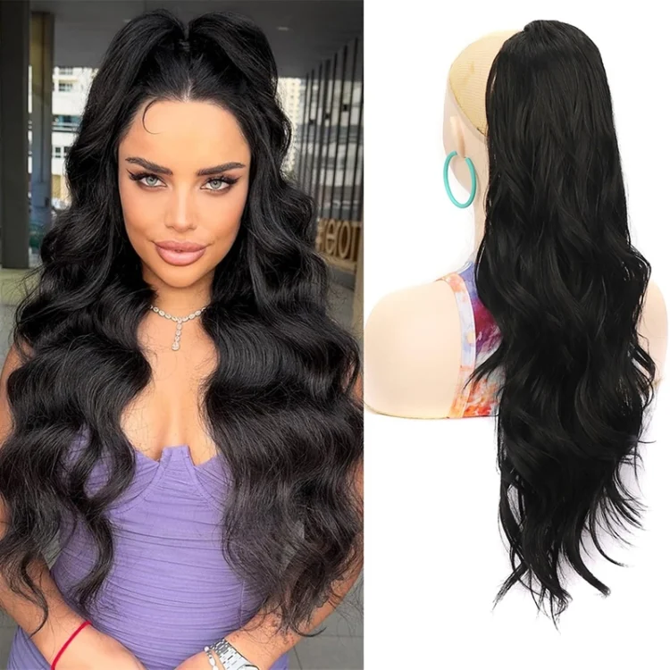Mesh Drawstring Long Wavy Curly Ladies Ponytail Wig