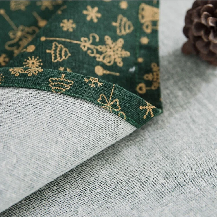 Linen Cotton Christmas Party Tablecloth Rectangle Bronzing Dinning Table Cover