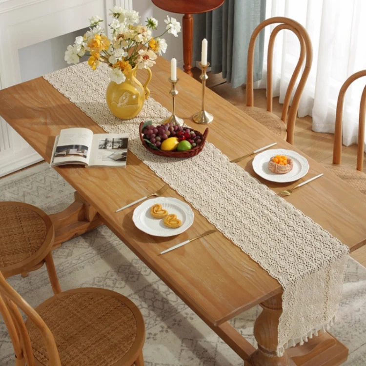Widened And Stitched Rustic Knitted Hollow Tablecloth