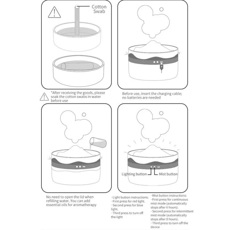 1. The volcanic/snow mountain-shaped aroma humidifier has both humidifying and atmosphere decoration functions. It supports adding aroma essential oils (essential oils need to be purchased separately).
