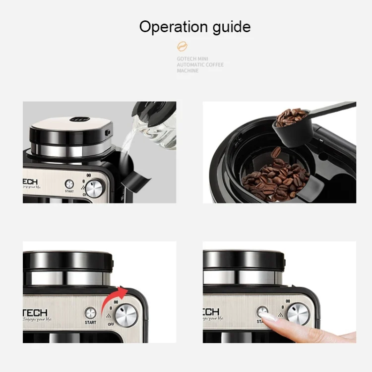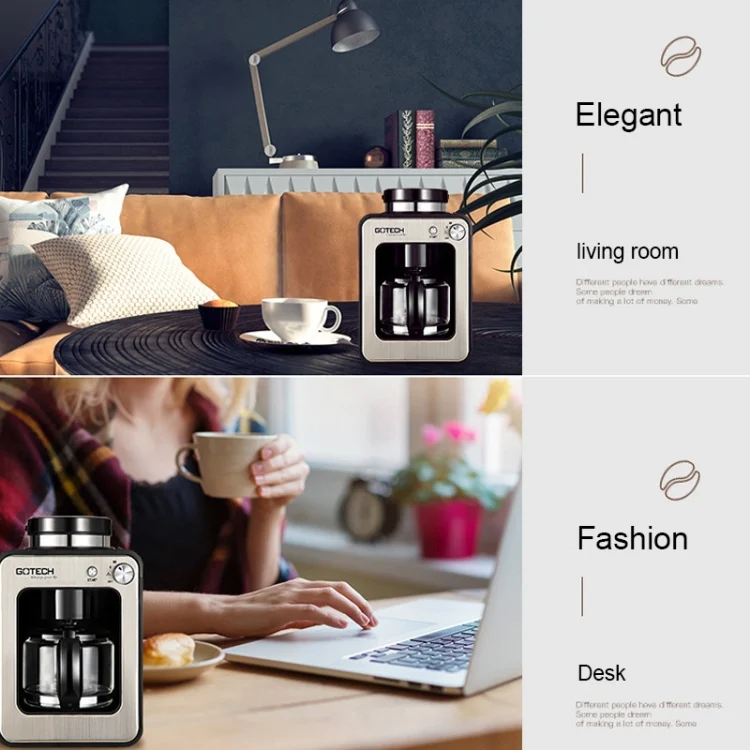 GOTECH Household Small Coffee Machine Automatic Grinding Integrated Commercial Freshly Ground Drip Coffee Pot
