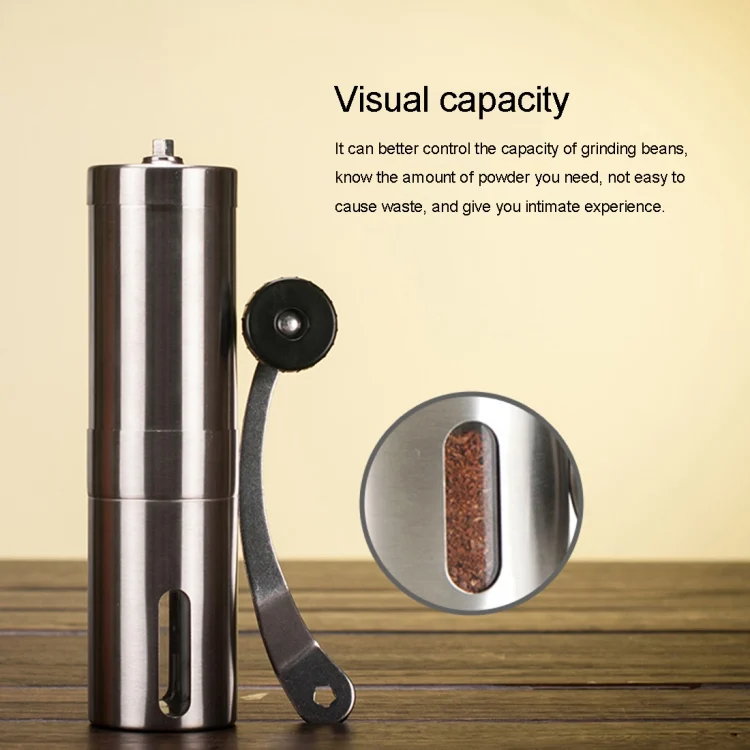 Portable Conical Burr Mill Manual Stainless Steel Hand Crank Coffee Bean Grinder, Capacity: 40g