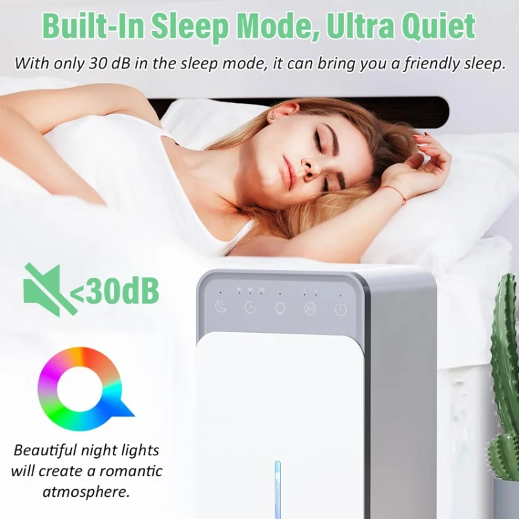 4. Silent dehumidification: In sleep mode at night, the dehumidifier automatically switches to soft power operation, with the noise as low as 30dB, and dehumidification is silent.