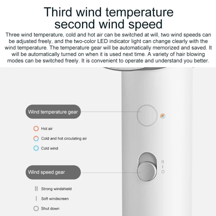 8. Three-speed wind temperature, two-speed wind speed can be adjusted freely