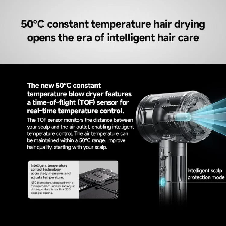 2. 50 degrees Celsius constant temperature for scalp-friendly drying.