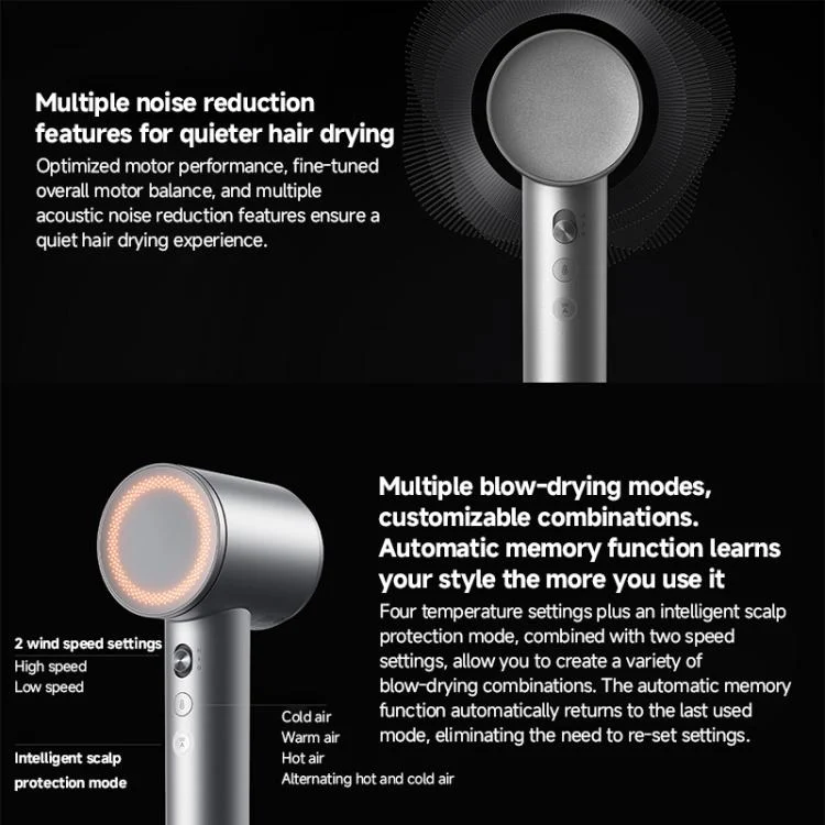 5. 2 speed settings and 4 temperature settings for flexible customization. Choose the drying mode that suits you best.