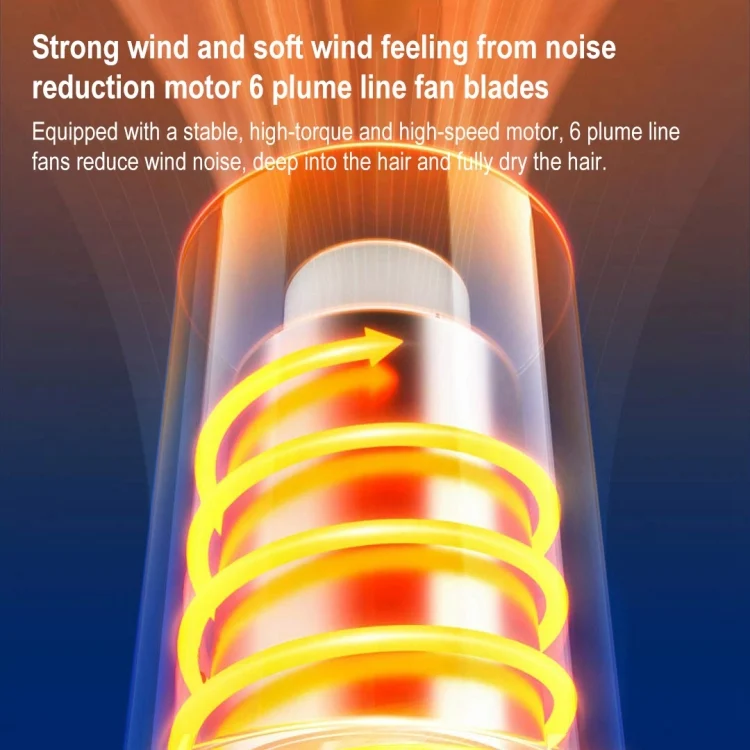 3. Equipped with a stable, high-torque and high-speed motor, 6 plume line fan blades reduce wind noise, deepen the hair and fully dry the hair