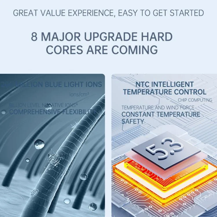 12. Built-in NTC intelligent temperature control chip reduces heat damage and provides extra care for hair and scalp.