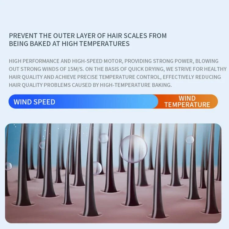 13. Prevents the outer hair scales from scorching under high temperatures. The high-performance, high-speed motor provides powerful power, delivering 15 m/s airflow.