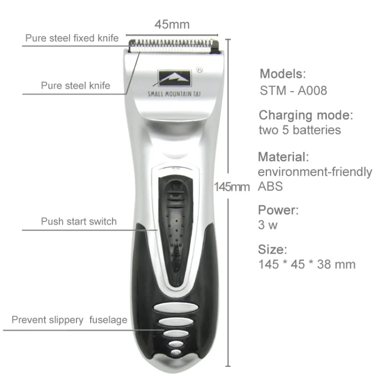 3.Function: applicable for men and children hair shaving, low decibel design. powered by one pair of AA batteries