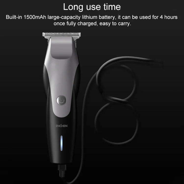 2. Use 8 months on one charge. The hair clipper has a built-in 1500mAh large-capacity lithium battery. The charging time is 3. hours, and the battery life can be used for 4 hours. The hair is cut every month for 30 minutes, which can be used for 8 months.