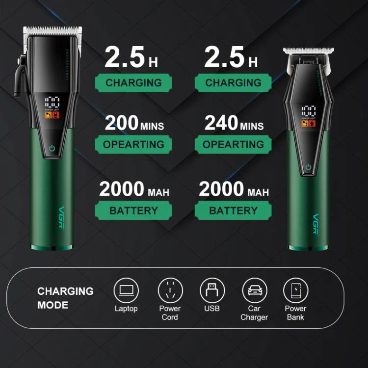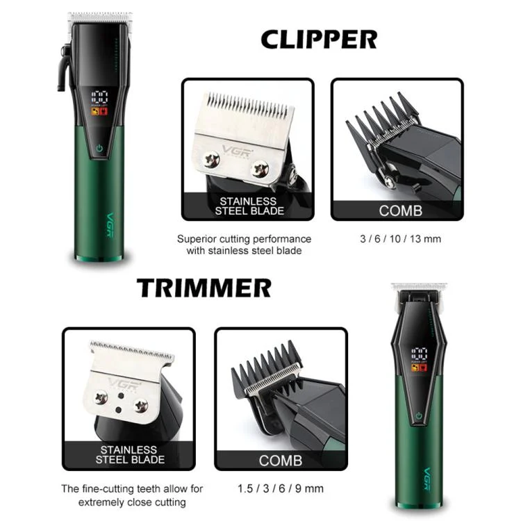 VGR V-677 LED Digital Display Electric Hair Clipper & Trimmer Set