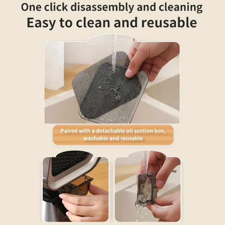 4. Double-layer filter technology, filter oil smoke without consumables.Removable filter + oil box, easy to clean and reusable
