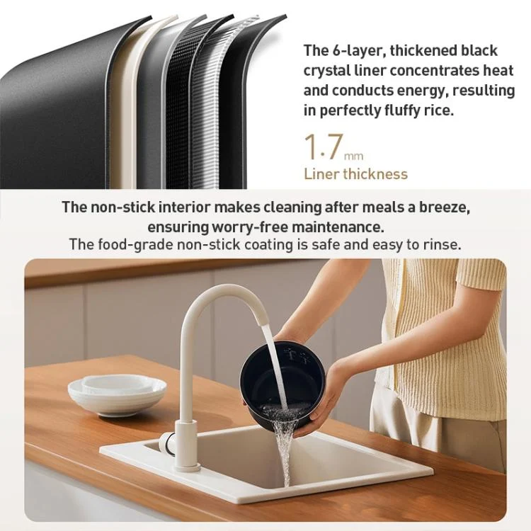 3. 6-layer black crystal composite liner for efficient heat conduction, making rice more fragrant.