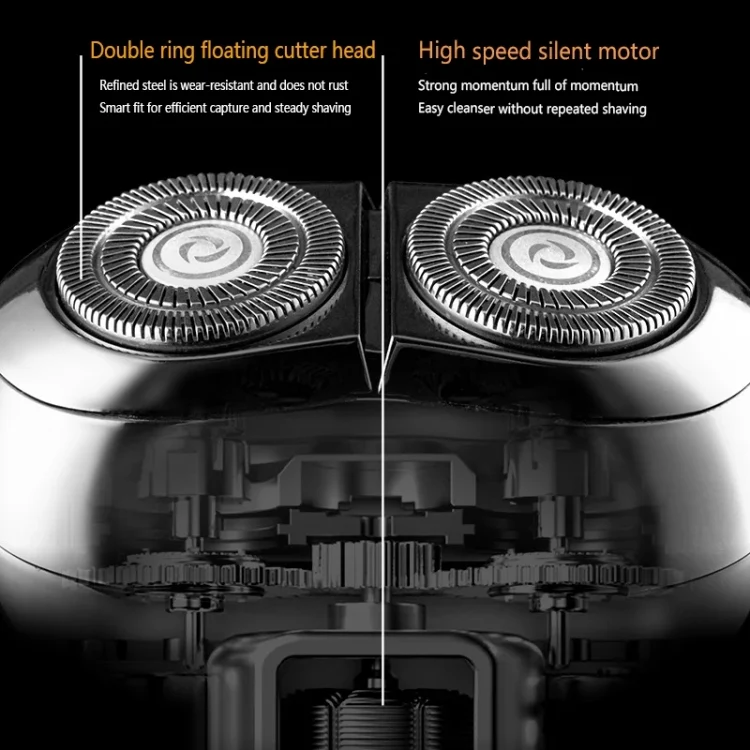 1. Rotating double-ring floating blade end, blade end self-sharpening technology, stainless steel build, wear-resistant and durable, not easy to rust, agile fit, efficient capture, stable and accurate shaving