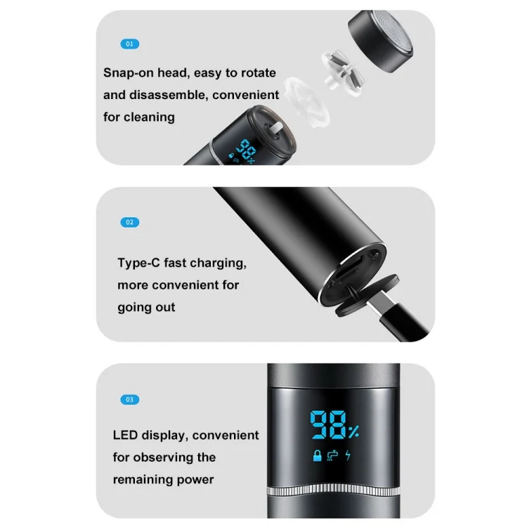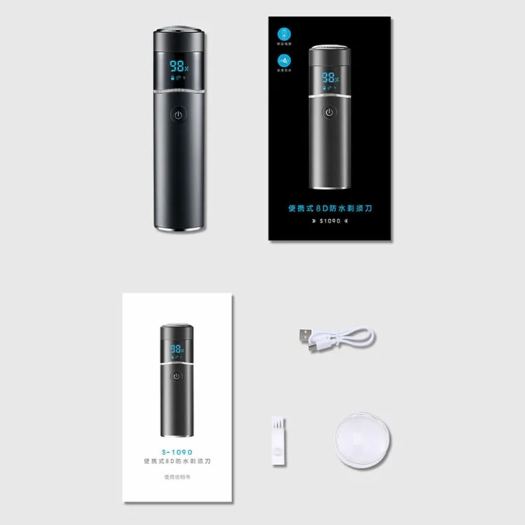 S-1090 IPX7 Waterproof 8D Portable LED Digital Display Round Electric Shaver