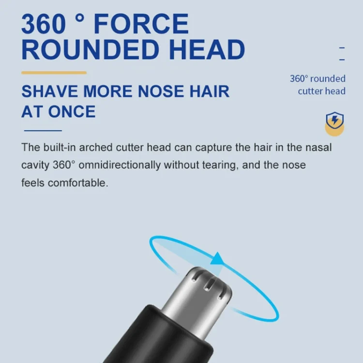 3. Built-in arched cutter head, 360-degree omnidirectional capture of the hair in the nasal cavity, no tearing feeling