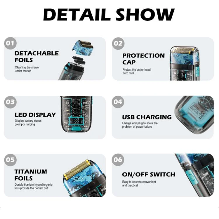 7. Double mesh blade head fits the face and can easily handle all kinds of beards.