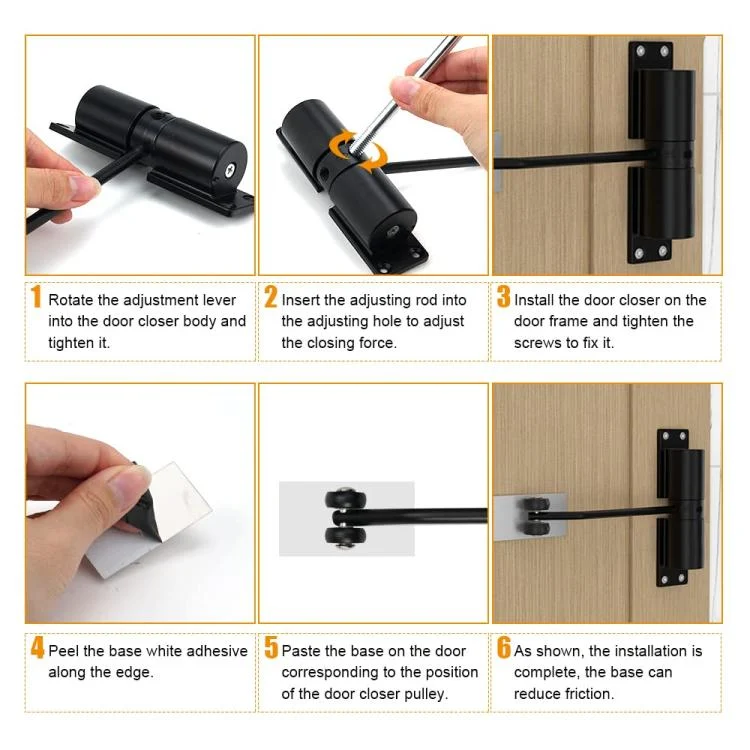 5. Easy installation, works on both left and right doors; simply rotate the door closer 180 degrees