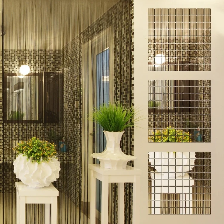 100 PCS Square Crystal Mosaic Mirror Acrylic Stereo Wall Stickers Creative Background Home Living Room Wall Sticker,Size:2*2cm